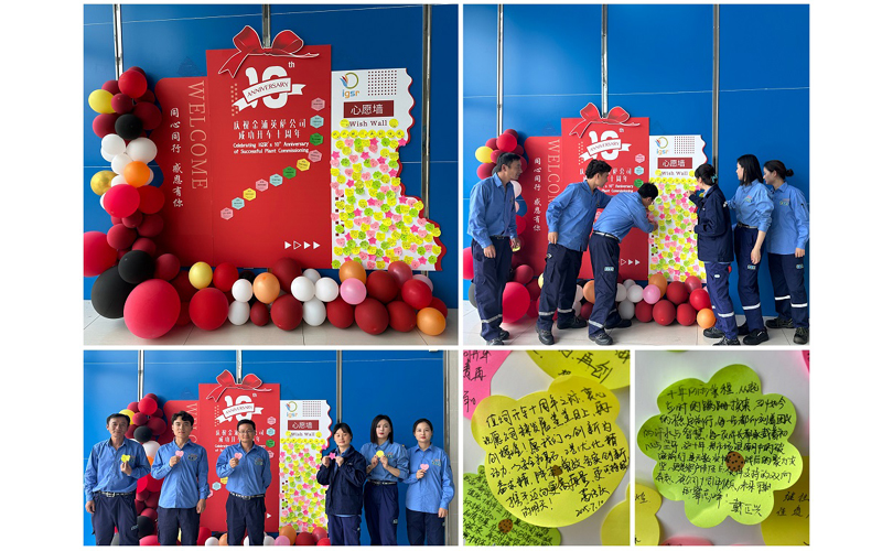 公用工程班長(zhǎng)戴正興在心愿貼上寫下“十年的風(fēng)雨兼程,從起步時(shí)的蹣跚探索到如今的穩(wěn)定前行,每一步都印刻著團(tuán)隊(duì)的汗水與智慧,每一頁成長(zhǎng)都承載著初心與堅(jiān)守。祝公司十周年生日快樂,未來可期、再攀高峰”;值班經(jīng)理葛傳慶則從專業(yè)角度表達(dá)了對(duì)未來的展望,“以創(chuàng)新為動(dòng)力,以安全為基石,工藝優(yōu)化精益求精,降本增效務(wù)實(shí)創(chuàng)新,攜手邁向更高質(zhì)量、更可持續(xù)發(fā)展的明天”。